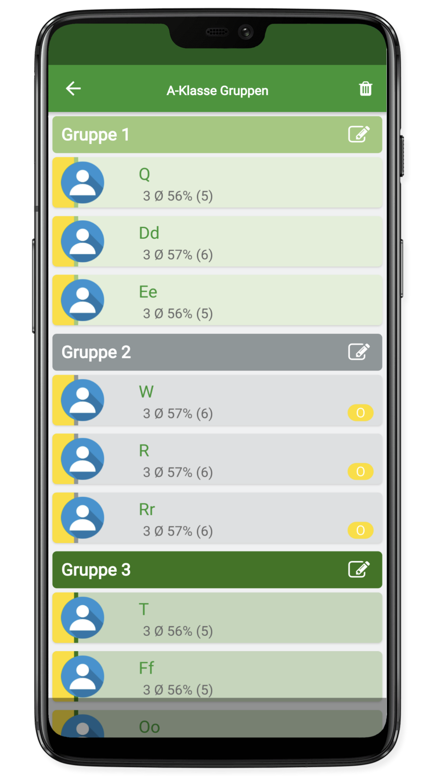 Ein großes Thema und auch leicht "umzusetzen". Einfach länger auf einen Schülernamen drücken und die neue Gruppe wählen.
